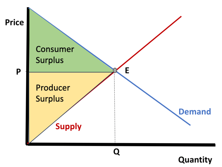 Fig 1: Demonstrates a free market scenario with the consumer and producer surplus
